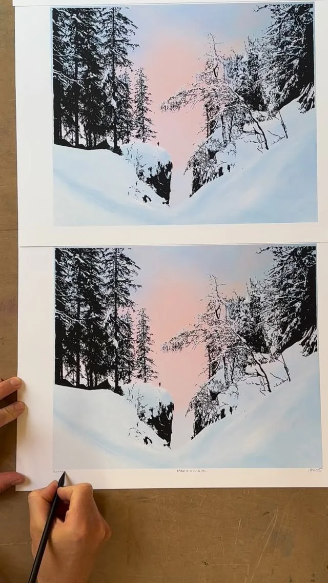 Her finner du et utvalg nye og eldre trykk innen flere forskjellige teknikker. Jørgen jobber primært med silketrykk og DGA. Også i kombinasjon.